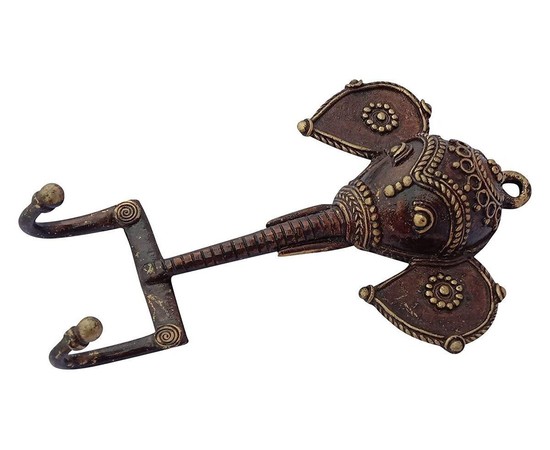 Pratibha Art Handmade Brass Wall Hanging Elephant Hook, Artistic Vintage Antique Elephant Wall Hook Hanger, Coat Hanger, Key Hanger, Clothes Hook Hanger
