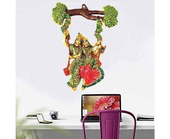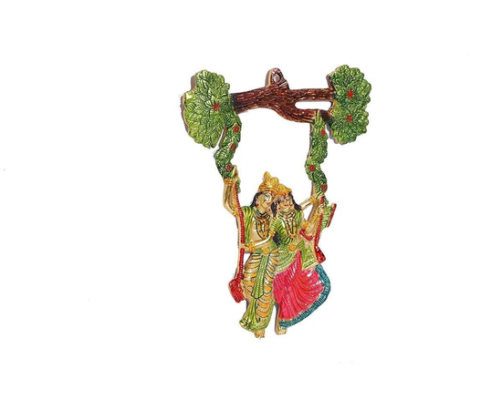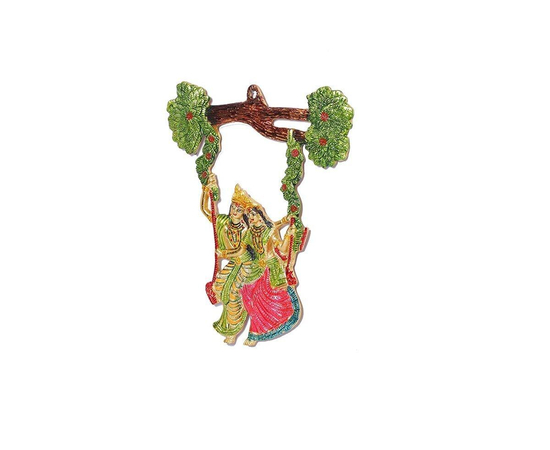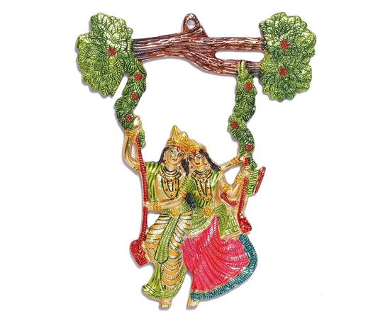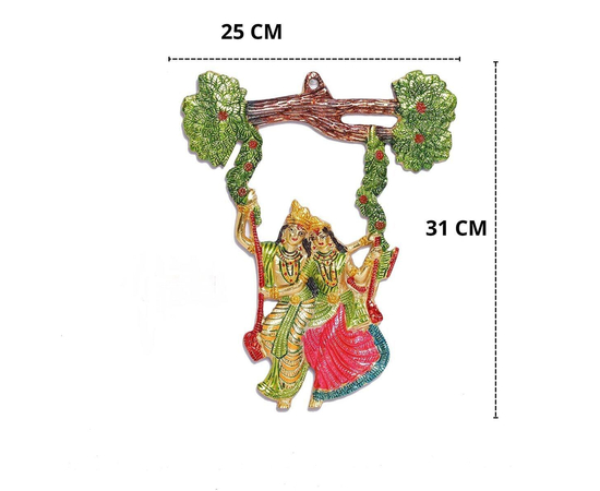 Radha Krishna Swing Jhula, Wall Decor Of Hanging Radha Krishna Swing on Tree, Metal Wall Art, Beautify Your Walls With Radha Krishna Metal Statue