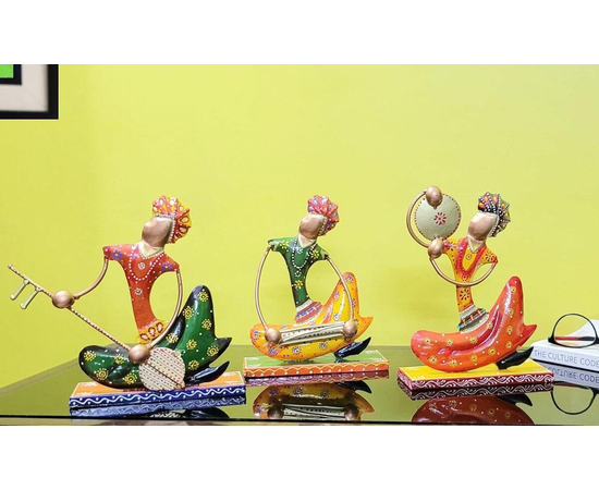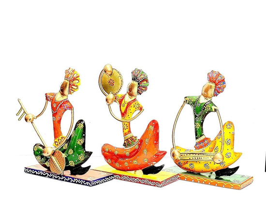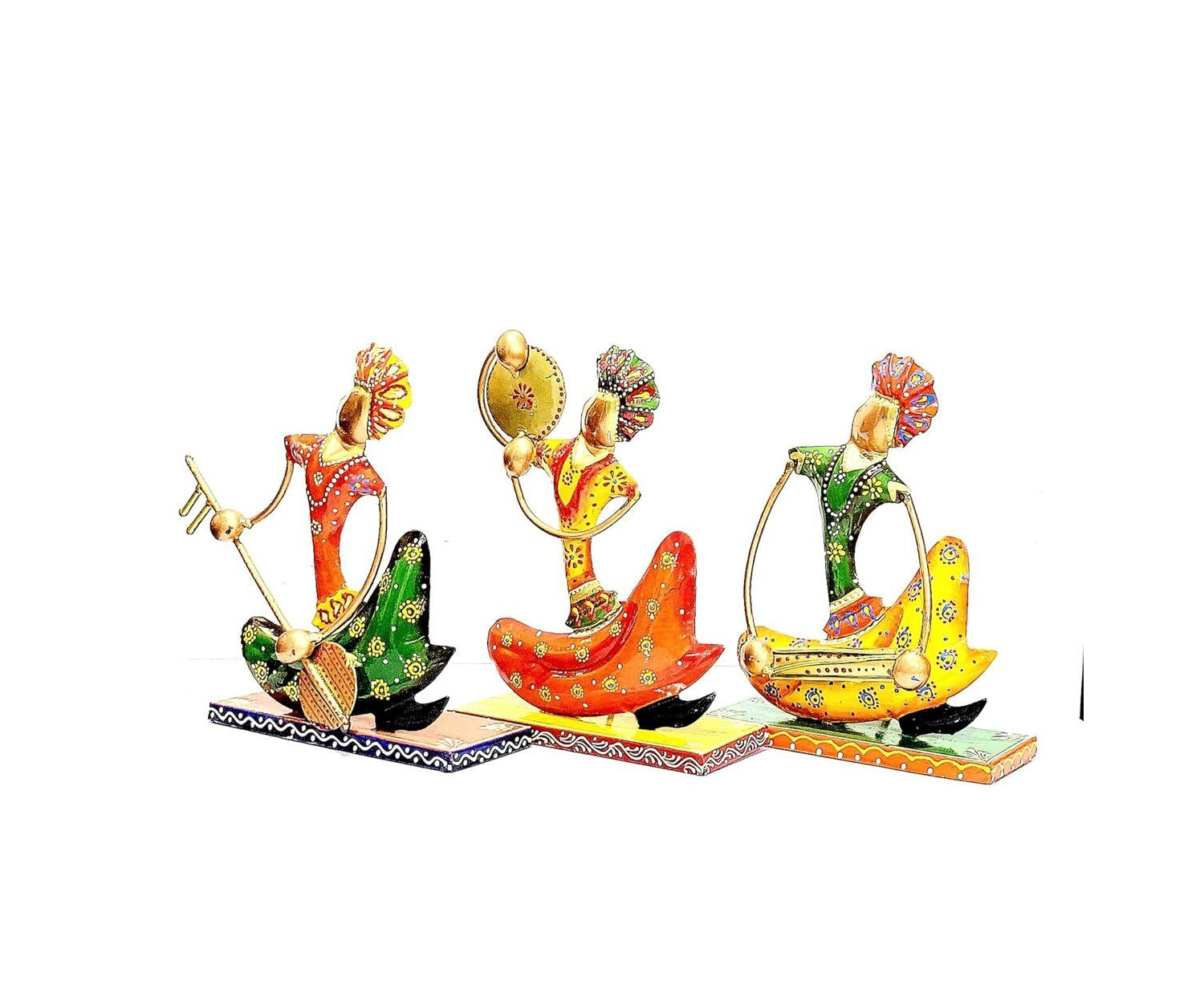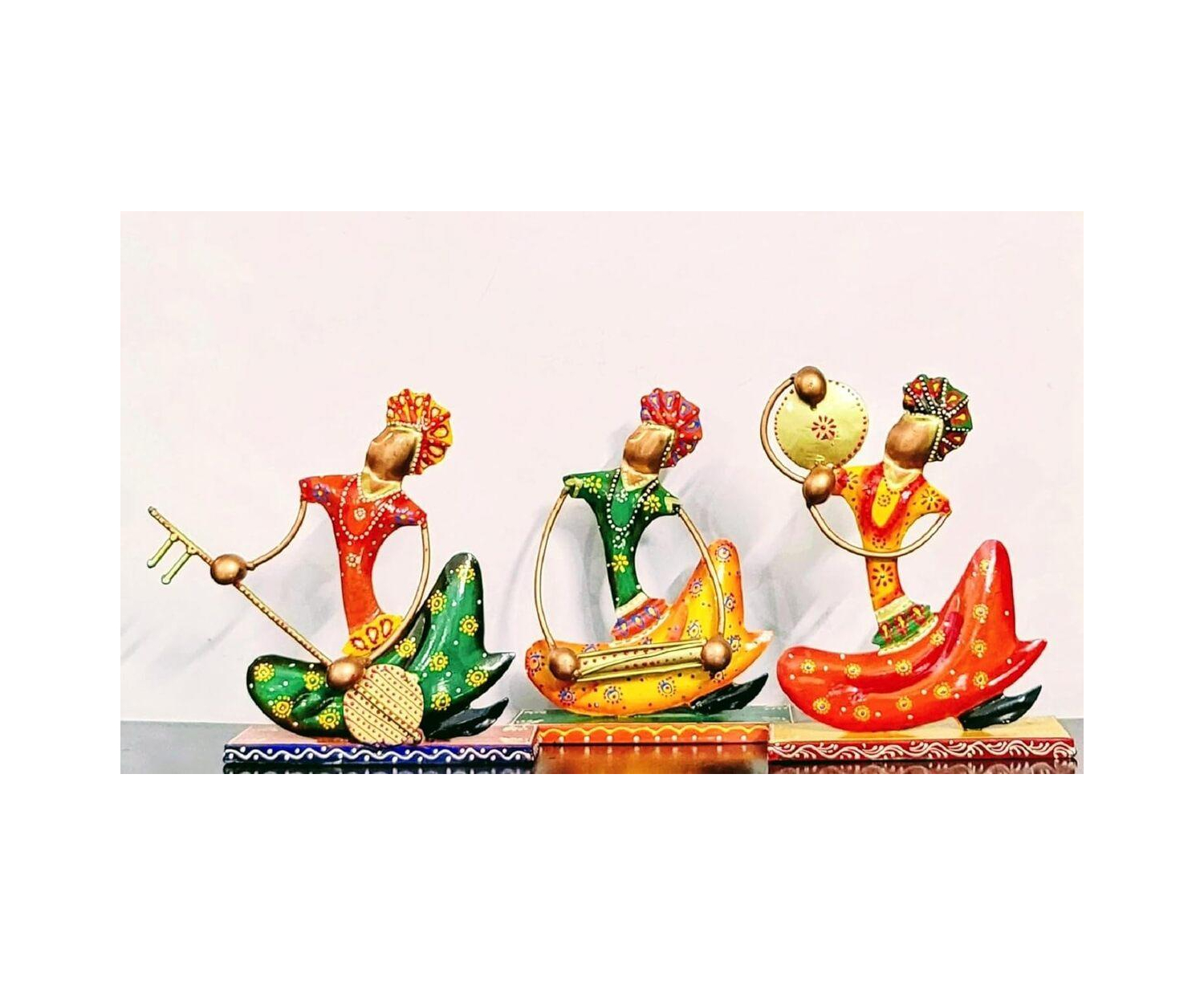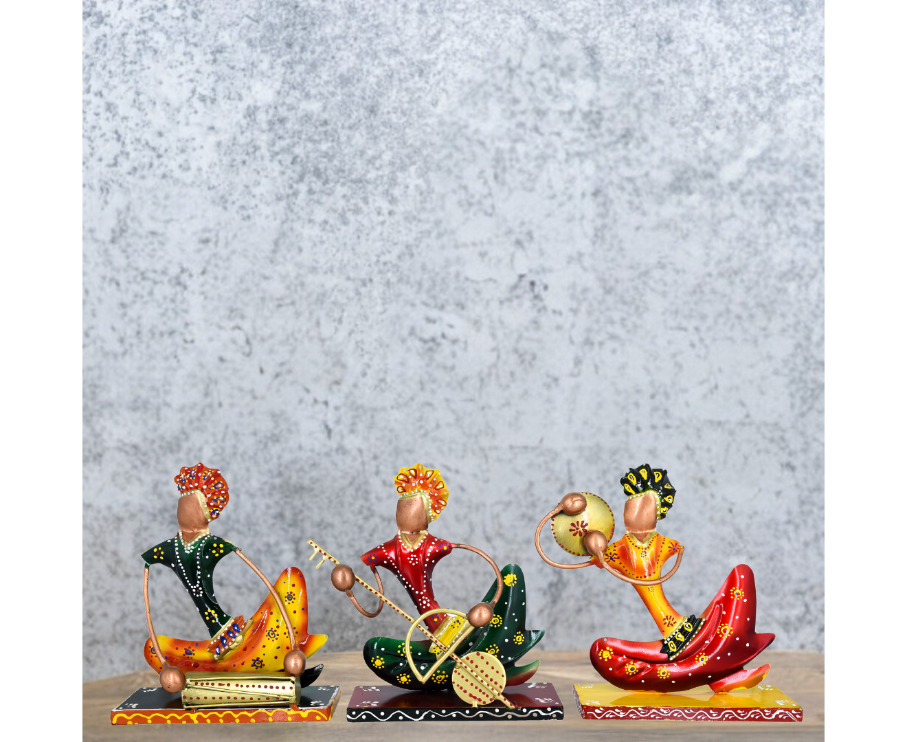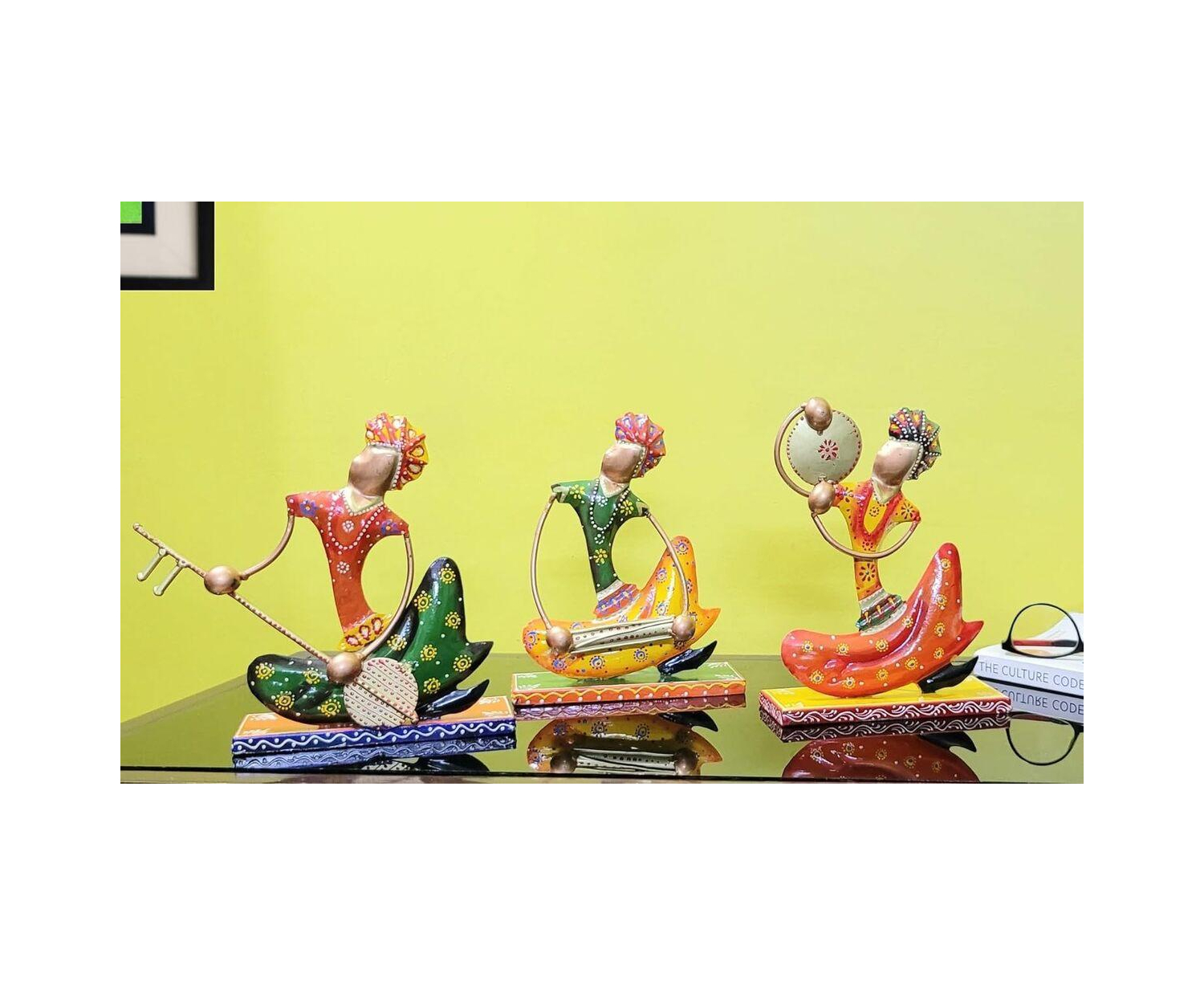 Rajasthani Decorative Home Décor Tribal Folk Musician Figurines/Excellent Gift Item for Living Room, Bedroom, Tabletop Décor | Multicolor Set of 3
