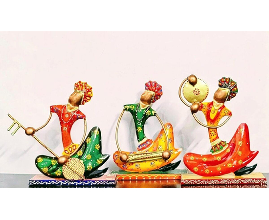 Home Decor Tribal Rajasthani Sitting Male Folk Musicians in Iron Handmade Decorative Items for Home | Gift Items | Showpieces | Stylish Table Decorative Items | Multicolour - Beautify your space with the artistic make, intricate detailing, variety of colors and designs. These products provide an eye-catching look to your home with a royal finish. It is also perfect as a match for your interior decoration. These Items Have Antique Elegant Design That Gives Addition To Your Home Decor Or Can Be Used For The Decoration Of Restaurants. ** This USE and UTILITY item is an ideal gift for your dear ones to pass your best wishes or gift for Anniversaries, Birthdays, Wedding gifts, Return Gifts, Corporate Gifts, Religious Gifts & Indian Festivals. ** Care Instruction - To maintain it in pristine condition, Clean it With a Soft & Dry Cloth or simply dust it off.
