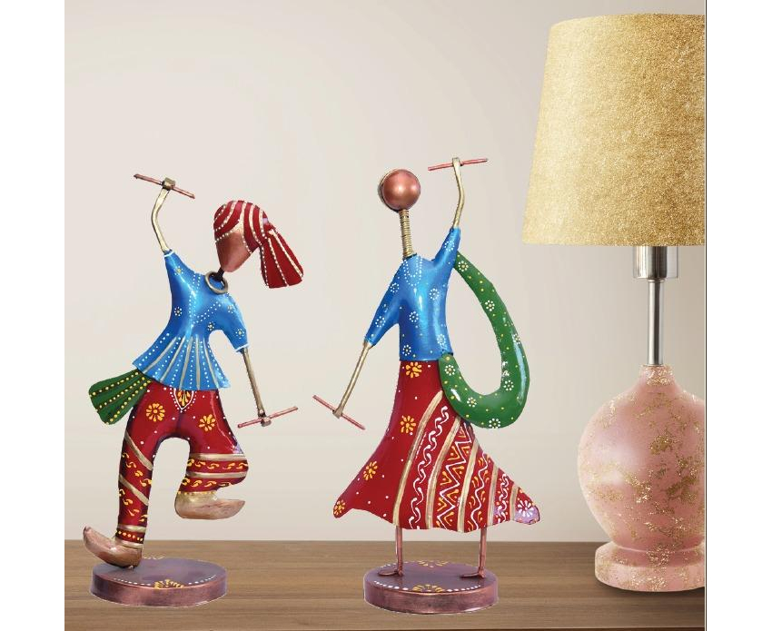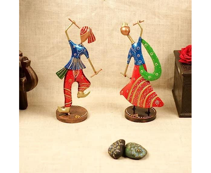 The couple's set can be used in various ways, making it a versatile decorative item. It can be placed on a table, shelf, or mantel, adding a festive and celebratory atmosphere to any space. It can also be displayed during Dandiya or Garba events, enhancing the overall ambiance.