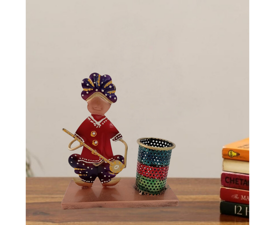 Rajasthani Vintage Musician showpiece Handcrafted Pen Stand Holder For Office Table, Study Table, Work-desk & Pen Stand for Gifting & Decoration Items For Home