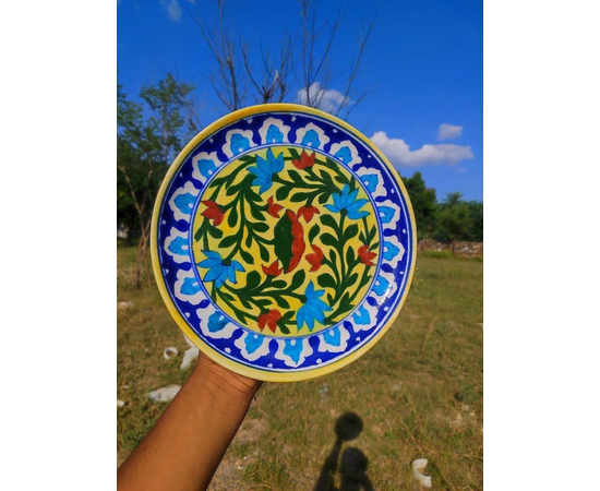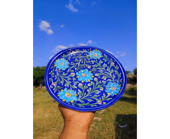 Shri Balaji Blue Pottery Handmade Decorated Pottery Wall Hanging Art Plate for Home, Beautiful serving plates