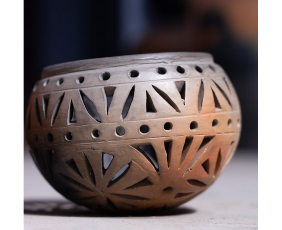 Brown/Black Tea Light Candle Holder -Double Baked.