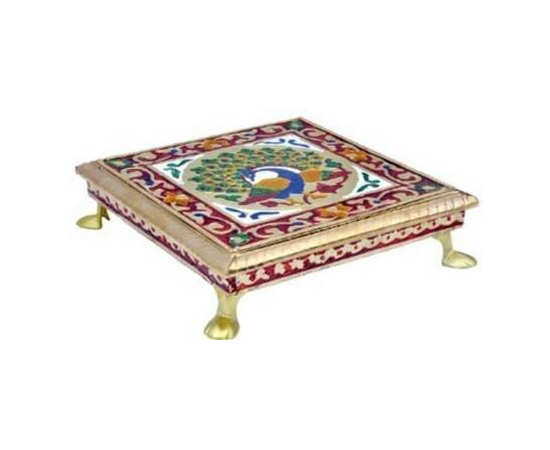 Made Of high-quality wood and embossed Meenakari artwork, this chowki is ideal for both home decor and gifts. Beautifully handcrafted by the skilled artisans, this square wooden choki is a nice choice for any occasion. It can be maintained easily by dusting with a soft cloth or brush. With fine Meenakari handwork on wooden, this chowki is the best quality product to use. It adds a touch of positive energy power and calmness to your room with its shiny appearance. Regional specialty for Rajasthan, this chowki is used as offering a seat to the lords and worship gods in India.