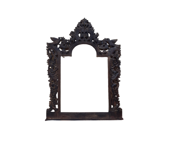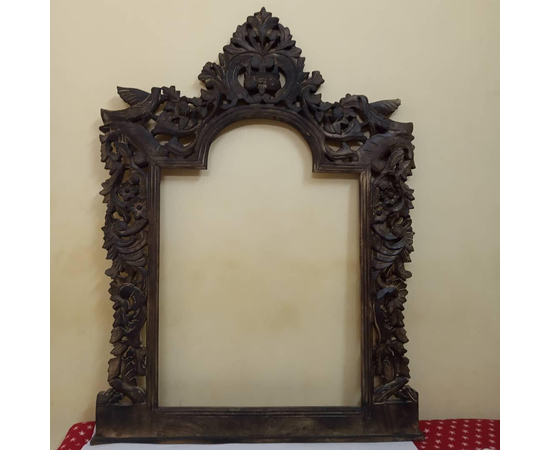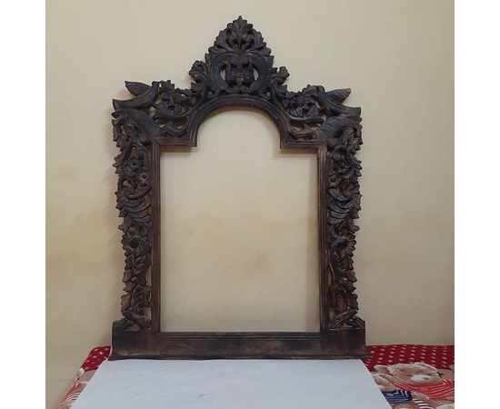 Our latest edition is this beautiful and eclectic ancient-era hand-carved wooden wall-mounted mirror or photo frame.