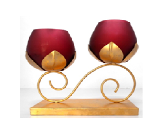| WROUGHT IRON GOLDEN CANDLE STAND FLOWER, WITH RED GLASS POT | H :- 7.75,L :-10.25,B :-4.75 H :- 4.25,L :- 4.50,B :- 3 |