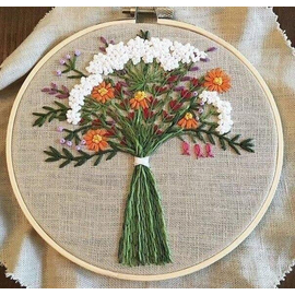 Flower Basket Embroidered Hoop - Wood Decorative Display Frame - Hand Embroidered Decorative Frame - Wall Hanging - Modern Fiber Art - Embroidery Hoop - Wa...