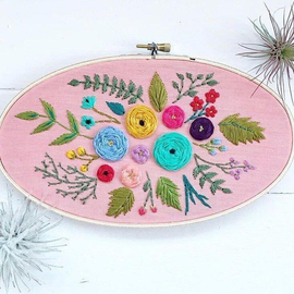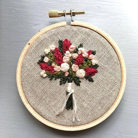 Hand Embroidered Decorative Frame - Flower Embroidery Hoop Wood Decorative Display Frame - Wall Hanging - Modern Fiber Art - Handicraft Home Decor & Gift Item