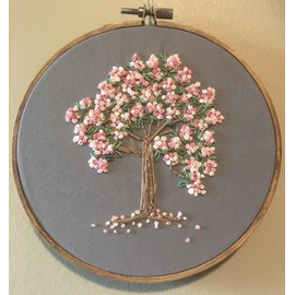 Floral Tree Embroidered Hoop - Wood Decorative Display Frame - Hand Embroidered Decorative Frame - Wall Hanging - Modern Fiber Art - Embroidery Hoop - Wall D...