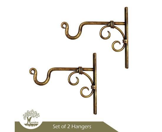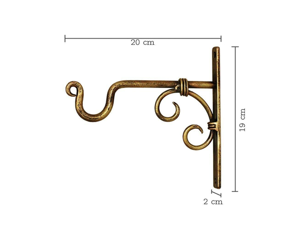 An antique finished golden chrome polished wall lantern/Diya hanger. This hand made hanger has multi-utility. It can use to hang basket planters, wind chimes, Diya or lanterns, bird feeders and other decorative hangings. The hanger is made of solid iron and we can install it to wall with mounting screws.
