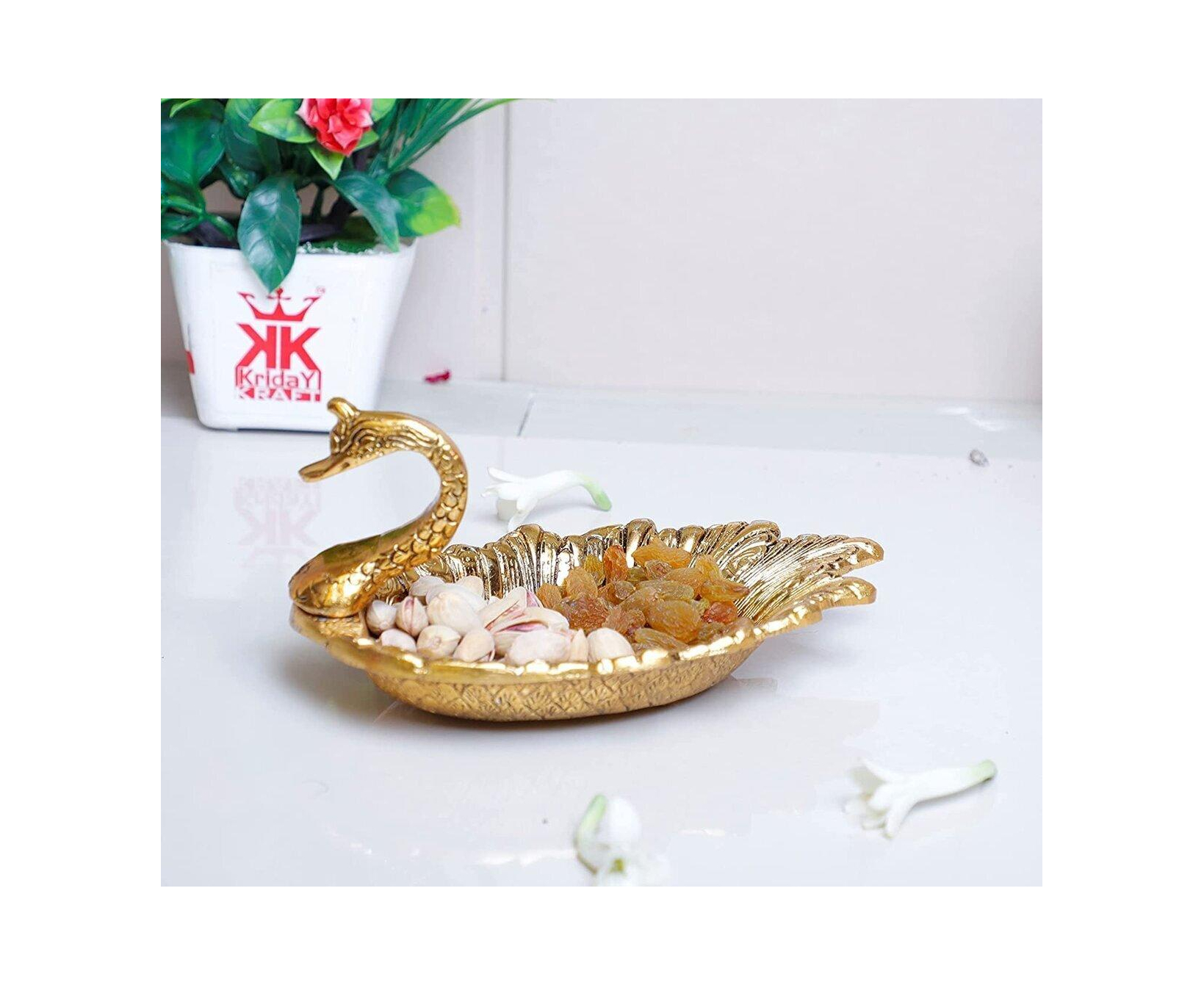 • A beautiful Metal Duck Tray in the shape of a swan is brought with a very beautiful carving done on white metal in an Antique golden finish to form this piece of beauty and utility. It is a beautiful piece to add beauty to your home decor and to be kept on the dining table.