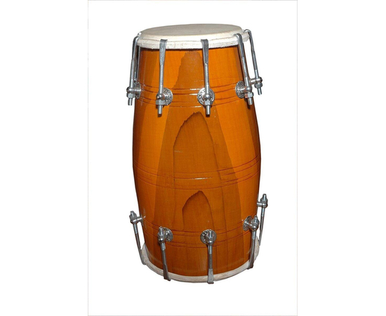 Beautiful Indian Handmade Wooden Dholak This Dholak Also Called Dhool In The Netherlands Is A South Asian Two-Headed Hand-Drum With Nuts and bolts (Adjustable Bolts For Setting The Pitch And The Tone) The Dholak Is Made From Wood And Will Give A Great Vibrant Sound Pitch. This Is Mainly A Folk Instrument, Surface Of The Dholak Is Made Of Goat Skin For Sharp Notes And The Bigger Surface Is Made Of Buffalo Skin For Low Pitches, Which Allows A Combination Of Bass And Treble With Rhythmic High And Low Pitches. The Drum Is Pitched, Depending On Size, With An Interval Of Perhaps A Perfect Fourth Or Perfect Fifth Between The Two Heads.