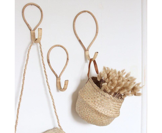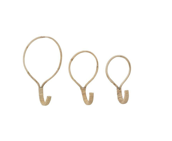Natural Bamboo Round Hook set of 3 - Vintage Hook - Classic Hook - Rattan Wall Hook - Set of Wall Hooks (3 Pcs)