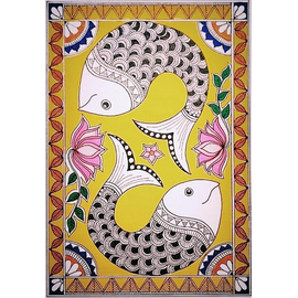 Madhubani Hand Painting/Fishes Painting/Folk Art Painting/Tribal Art/Handmade Painting | Exploring the Mythical World of Madhu Bani Art |