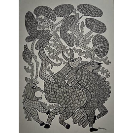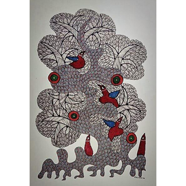 Gond Hand Painting/The Life Painting/Folk Art Painting/Tribal Art/Handmade Painting