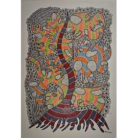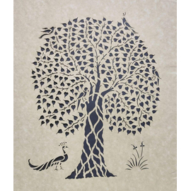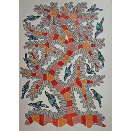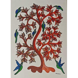 Gond Hand Painting Tree Of Life - Original Gond Art Painting - Indian tribal painting - Handmade paper - Tree & Birds painting