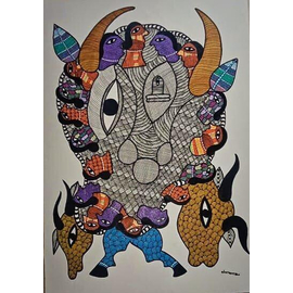 Gond Hand Painting/The Creator Gond Painting/Folk Art Painting/Tribal Art/Handmade Painting/Indian Art/Traditional Gond Paintings/Original artwork for home d...