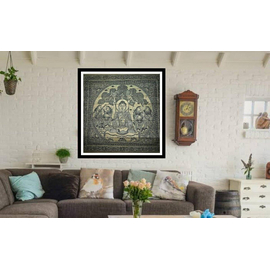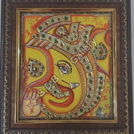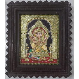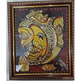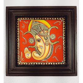 Ganesha Tanjore Painting, Lord Ganesha Indian Handmade Embossed Painting with Wooden Frame for Wall Decor, Room Decor, Gift Items