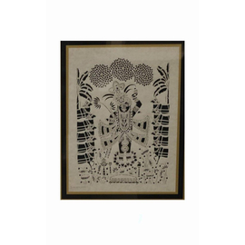 Paper Cutting in Black Glaze Paper | Krishna With Peacock | Handmade paper Cutting Sanjhi Art Lord Krishna | Wall Decor