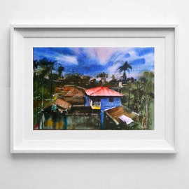 After the Rain - Watercolor Original Art landscape Artwork - Modern Wall Art - river landscape - rustic home wall art - landscape painting - boat house