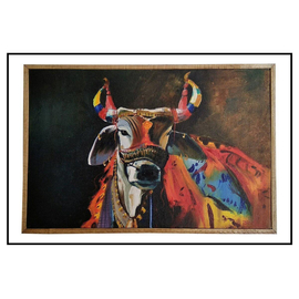 Oil on Canvas Painting Handmade, Nandi cow painting - Nandi cow canvas painting, Shiva Nandi Paintings, Indian Nandi cow paintings, Bull painting