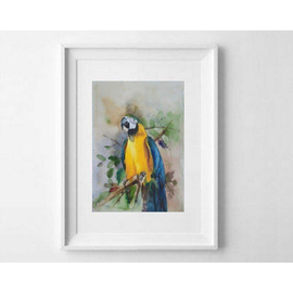 Hand Painted Macaw Painting, Blue and yellow macaw watercolor painting, animal, illustration, bird, home decor, wall art