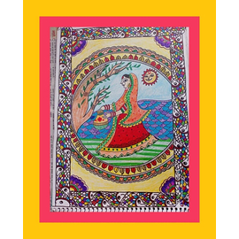 Madhubani Hand Painting Chatt Puja Paintings Madhubani Original Handmade Painting, Indian Traditional Folk Art, Home Decor