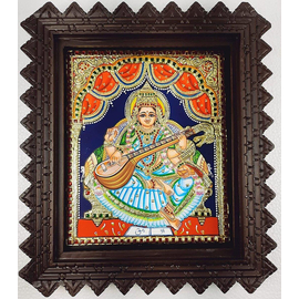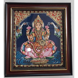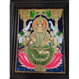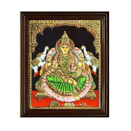 Gajalakshmi Tanjore Painting with Frame, Wealth Goddess, Gold Foils, Beautiful Painting, Indian Art, Wall Hanging, Room Decor, Gift Items