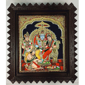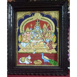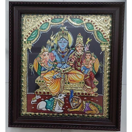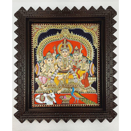 Shiva Family Tanjore Painting, Gold Foil Handmade Painting, Pooja Room Décor, Tanjore Religious Painting, wooden Framed Painting