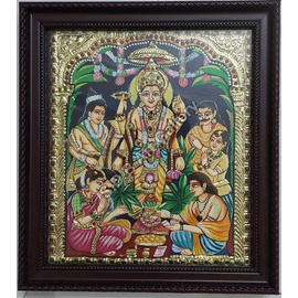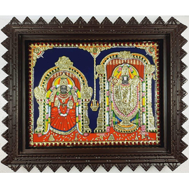 Tirupati Balaji and Padmavati tanjore painting, Wood Wall Hanging, Tanjore Painting Balaji Padmavathi, venkateshwara, Multi-Color, Hand Painted, Gold Foils W...