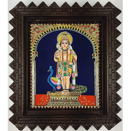Murugan Tanjore Painting, Subramanya Painting, Murugan with Peacock Tanjore Religious Painting with Wall Hanging, Gold Foils, wood Framed Painting, India Art...