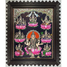 Vintage Thanjavur Painting of Ashtalakshmi, Gold Foil with Wooden Frame Tanjore Painting, 8 Forms Lakshmi, Lakshmi Tanjore Painting, Ashtalakshmi, Indian Art...