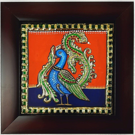 Peacock Tanjore Painting Gold Foils, Wooden Wall Hanging, Tanjor Handmade Peacock Arts And Craft, Apt For Gifting For Your Loved Friends & Family