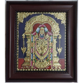 Lord Tirupathi Balaji/Venkatachalapathi Tanjore Paintings, Gold Foil, Wood Frame, Balaji Tanjore Painting, Pooja room Décor, Indian Art work