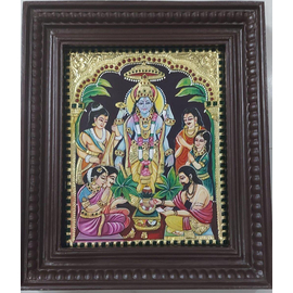 Ram Darbar Tanjore Painting with Wood Frame, Rama tanjore, Ram Sita, Lakshman, hanuman painting, Gold Foils, Indian Art work