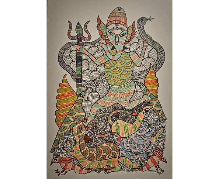Gond Hand Painting The Creator Gond Painting/Folk Art Painting/Tribal Art/Handmade Painting