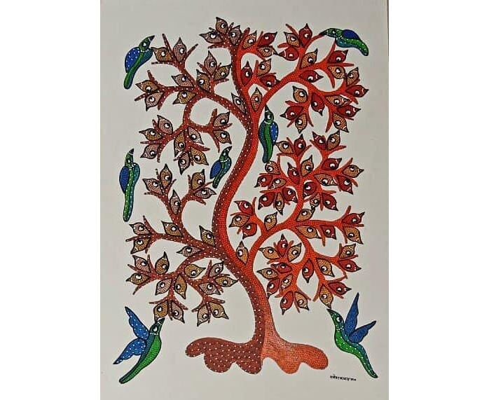 Gond Hand Painting Trees Of Life: Hand made by the Gond Artist of Madhya Pradesh