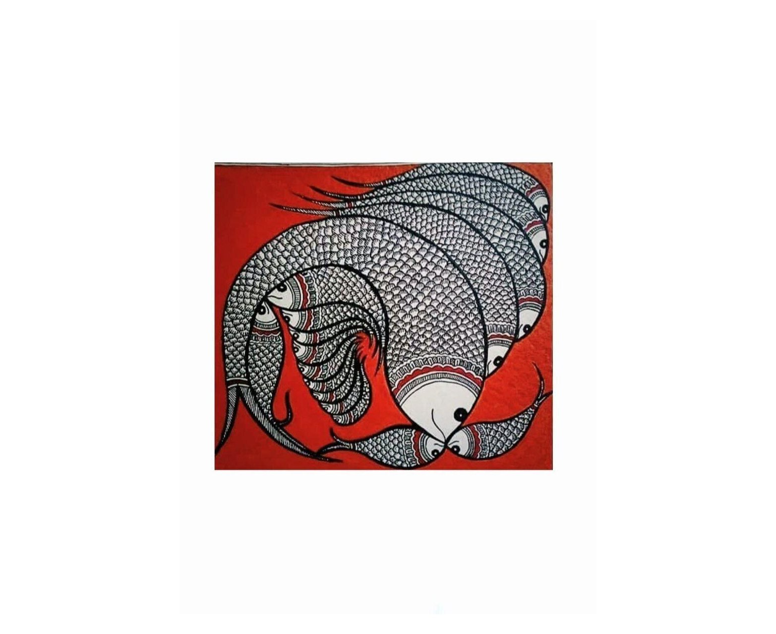 - Fishes: Hand Painted by the State Awardee artist of Madhubani, Bihar