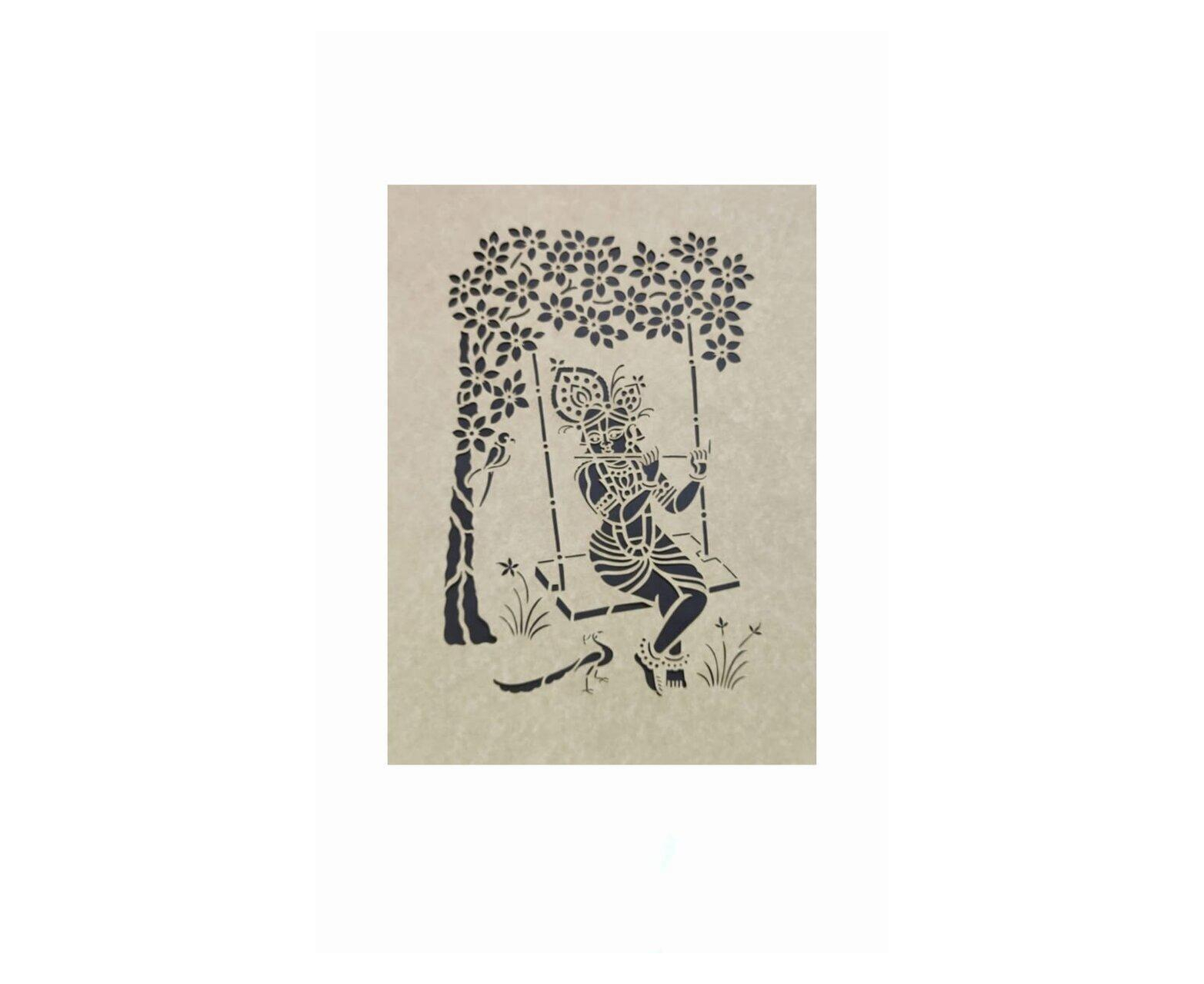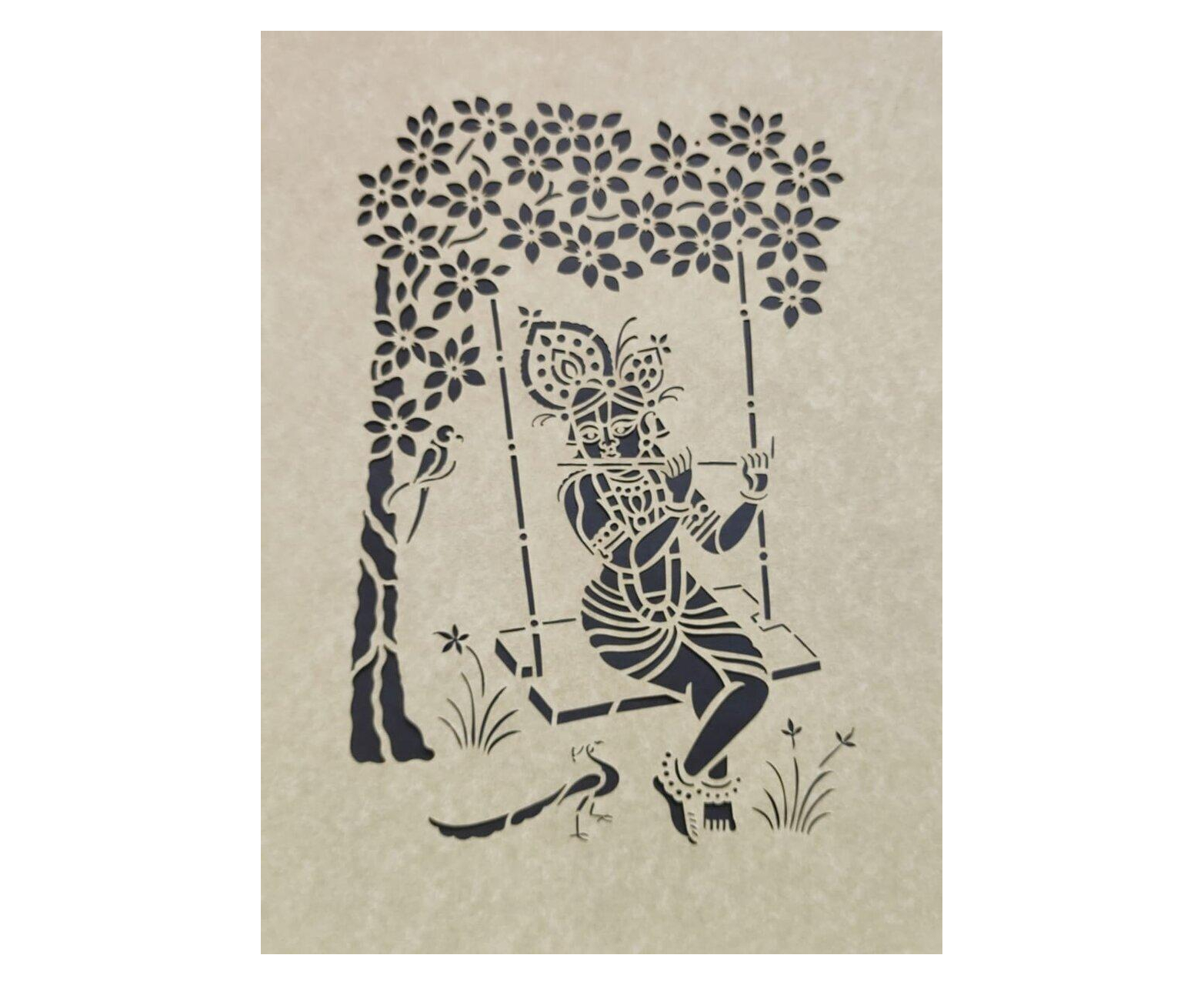 Paper Cutting in Black Glaze Paper Krishna With Peacock | Housewarming Gift | Custom House Art | House Wall Art
