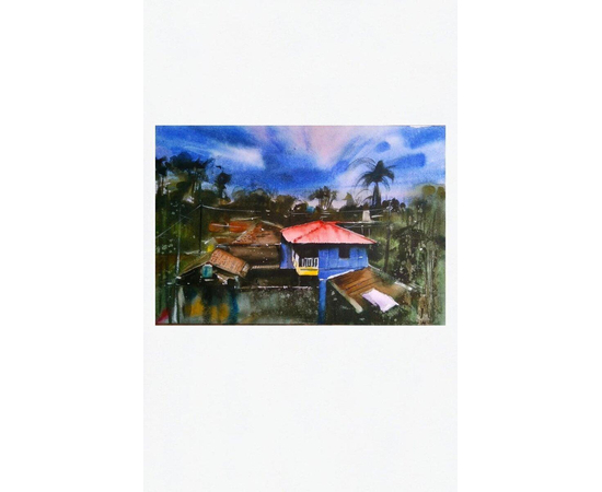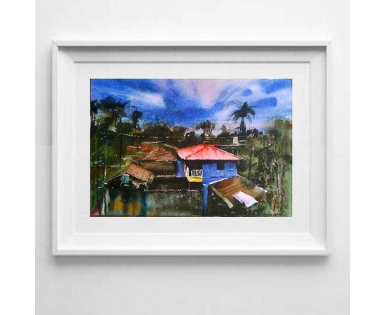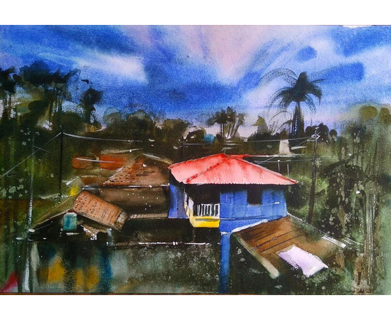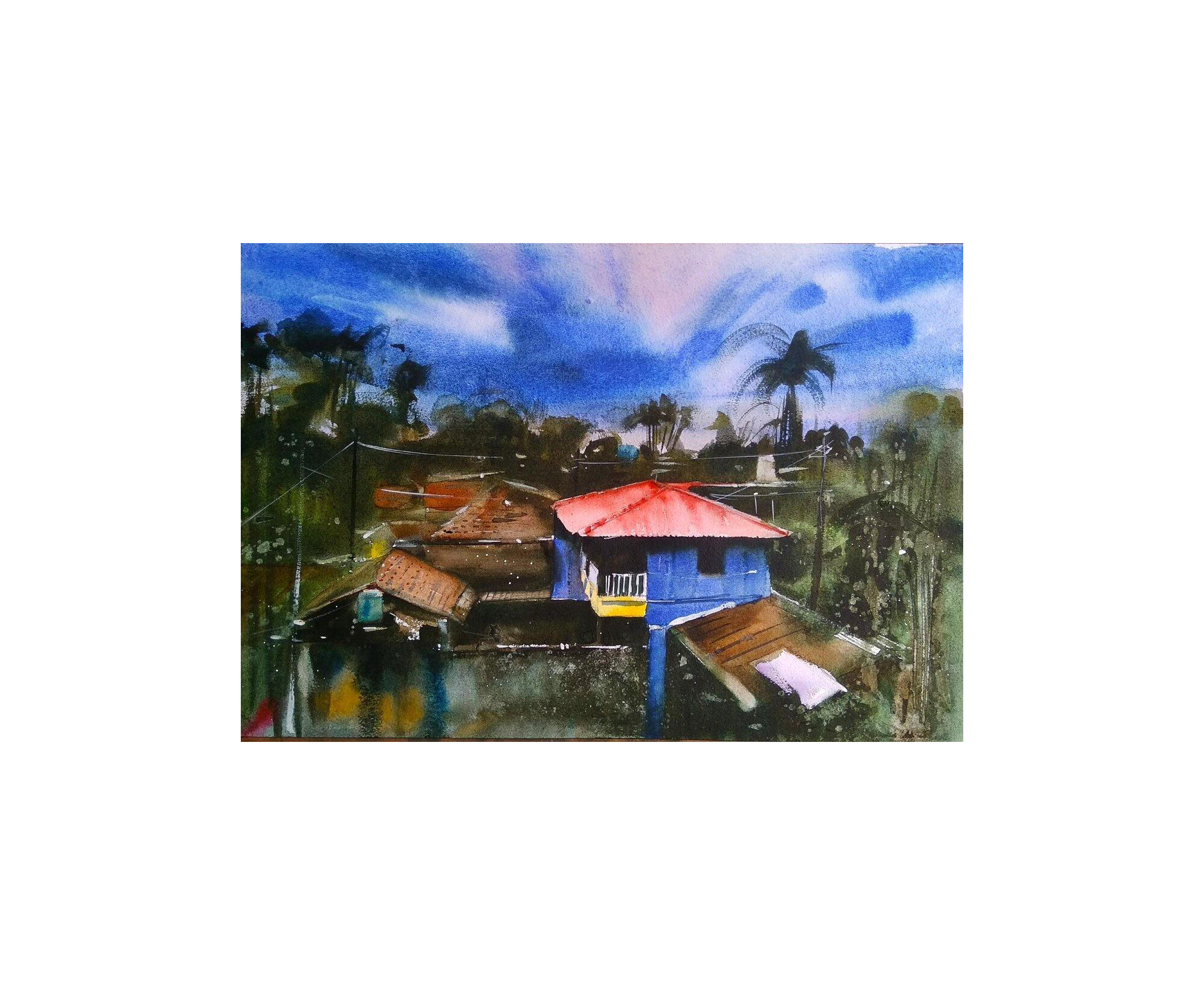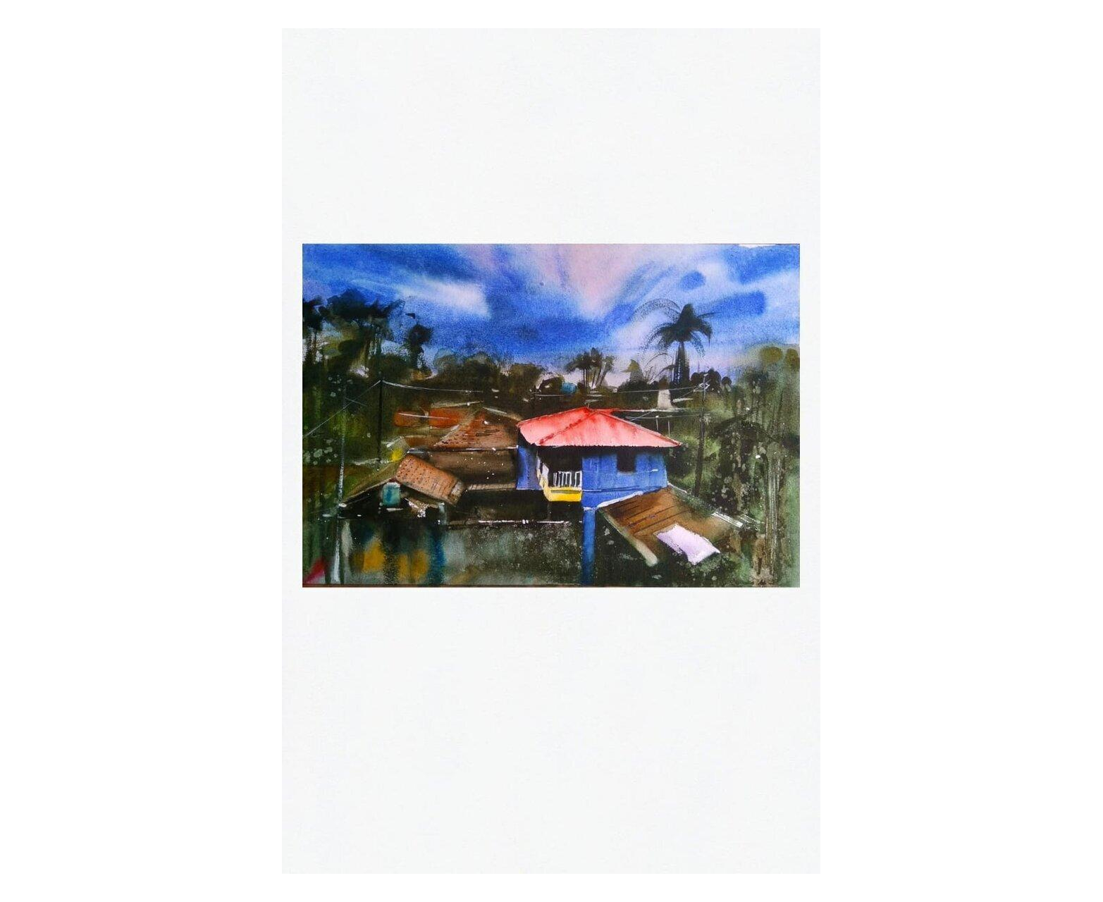 After the Rain - Watercolor Original Art landscape Artwork - Modern Wall Art - river landscape - rustic home wall art - landscape painting - boat house