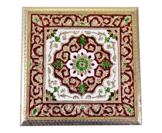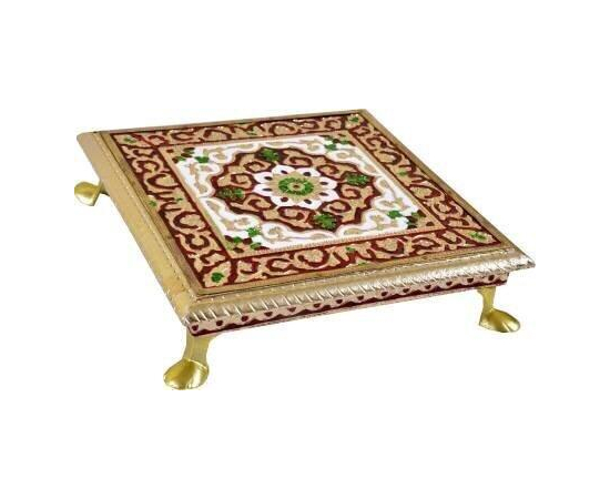 Small Handmade Wood Pooja Chowki (Red, Gold, Pack of 1)