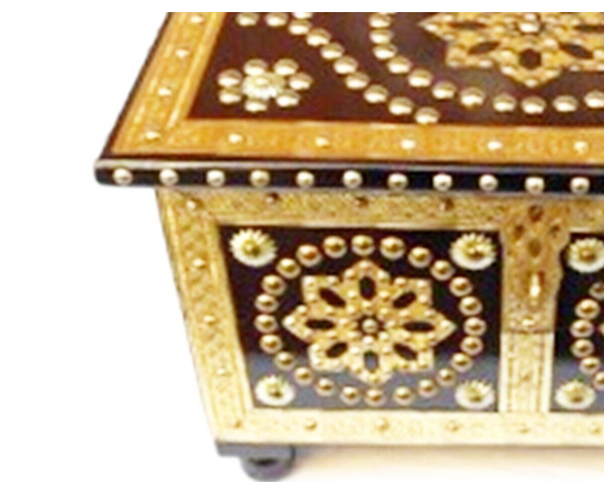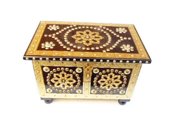 In handmade WOODEN AND BRASS DESIGN BOX, you will see a beautiful masterpiece of craftsmanship. high-quality boxes are planned particularly to finish carving to safeguard the significant originality and delicate things from dampness. Box elevates the rich Indian legacy. This is a smooth and basic knickknack gems box for ordinary use. This Indian Jewelry Holder is an ideal for anyplace from the dresser to the end table to the vanity. Keep your little adornments things like hoops, rings, toe rings, safe and secure in this case. Additionally, a multi-utility box can be utilized to safeguard many other valuable things. Our high-quality gems boxes make perfect gift item that can be cherished for a lifetime. this Wooden & Brass Jewelry Box is a delightful theme created out of decorated metal.  The piece serves as a beautiful thing that can be shown anyplace in the home. Because of the ideal size of our fine gems holder, you can generally pack it with you any place you go. In case you're searching for the ideal Birthday/Anniversary/Valentine's Day present for your noteworthy another half, or for a perfectly made adornments case for your daughter, consider your journey over. At the point when you need to make basic and representative endowments to your companions and family, this knickknack box might be the perfect blessing.