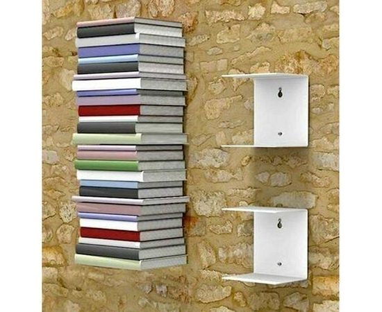 2 Pcs Wall Mounted Modern Bookcase Invisible Book Shelf Rack Home Wall Floating Bookshelf Decor (White)