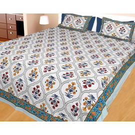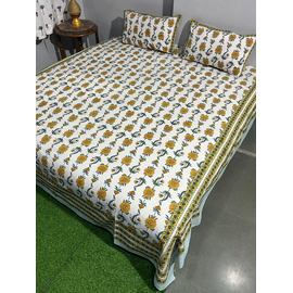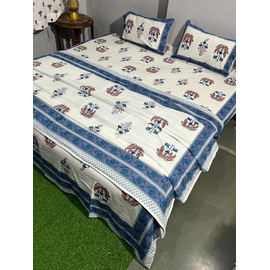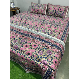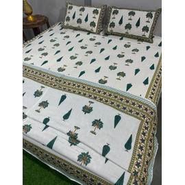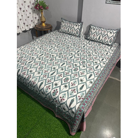 Jaipuri Hand Block printed king-size double bed sheet 100% Pure and refined cotton used. 3 Pcs set ( one bedsheet + 2 pillow covers )