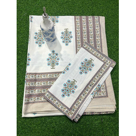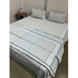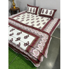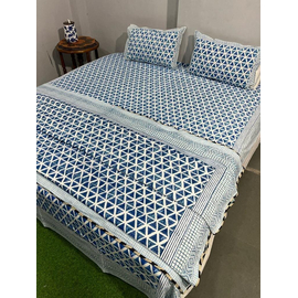 Jaipuri Hand Block Printed Pure Cotton (Set of 4 Pcs) - 1 Dobule Bed Dohar, 1 Bedsheet, with 2 Pillow Covers / Room Decor