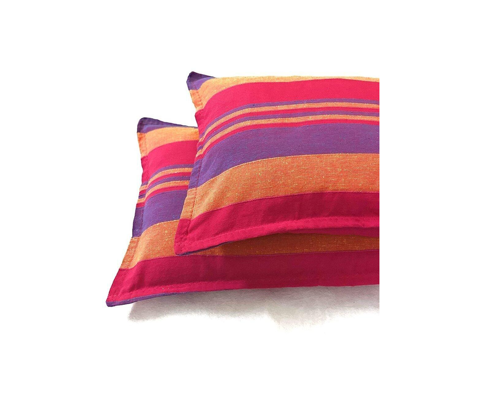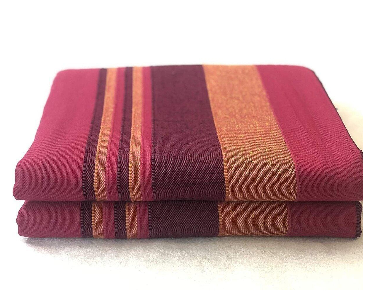 Handmade Khadi Cotton Stripes Bed Linen, Bed sheet, Bed Cover, Handwoven Bed spread, Maroon Bed Sheet with Pillow covers 102 inch x 90 inch