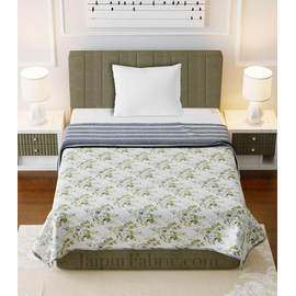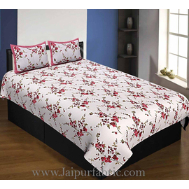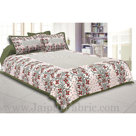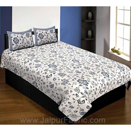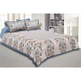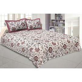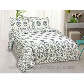 Grey Border White Base Brown and Grey Flower and Leaf Pattern Coton Double Bedsheet
