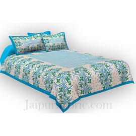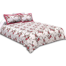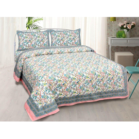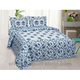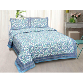 Jaipuri Hand Block Printed Pure Cotton (Set of 4 Pcs) - 1 Dobule Bed Dohar, 1 Bedsheet, with 2 Pillow Covers / Room Decor