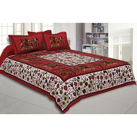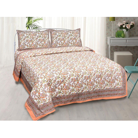 Jaipuri Hand Block printed king-size double bed sheet 100% Pure and refined cotton used. 3 Pcs set ( one bedsheet + 2 pillow covers )